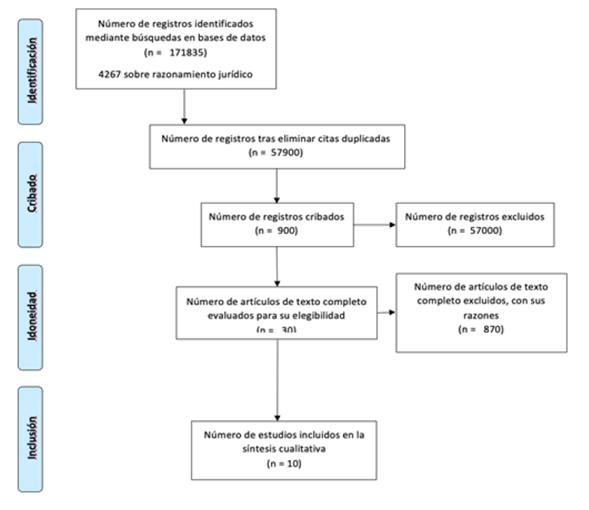 “razonamiento jurídico” y “gobernabilidad”, descartándose los artículos que no